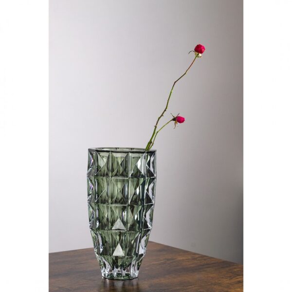 Elegancki wazon DIAMOND SMOKEY GREEN to połączenie nowoczesnego designu z ponadczasową formą. Charakterystyczny, diamentowy szlif efektownie odbija światło, a subtelny, dymny odcień zieleni nadaje całości luksusowego i wyrafinowanego charakteru.