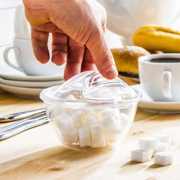 Stylowa i elegancka cukiernica szklana o klasycznym i ponadczasowym wzornictwie. Wyposażona w praktyczne wieczko z miejscem na łyżeczkę, co zapewnia doskonałą harmonię wszystkich elementów. Jej elegancja umożliwia bezproblemowe używanie podczas spotkań z przyjaciółmi przy kawie i ciastku, a zastosowane szkło nadaje jej szlachetny charakter, dzięki czemu cukiernica doskonale komponuje się z każdym zestawem stołowym.