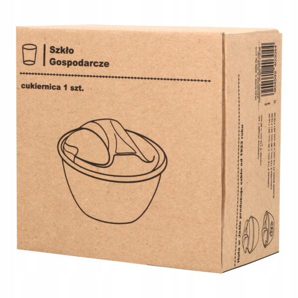 - Solidna szklana cukiernica wykonana z grubego przezroczystego szkła.
