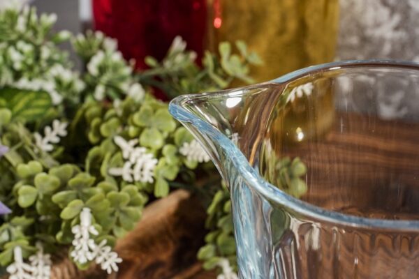 ✅ Szklany dzbanek o klasycznym kształcie z wyprofilowanym dzióbkiem i uchwytem ułatwiającym nalewanie i przenoszenie.