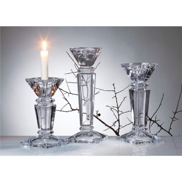 Kryształowy świecznik wykonany z najwyższej jakości szkła kryształowego. Szkło jest idealnie przejrzyste, a świecznik pięknie prezentują się na stole. Świecznik służy jako niezwykle efektowna ozdoba wnętrza, świetnie sprawdzi się także jako prezent.