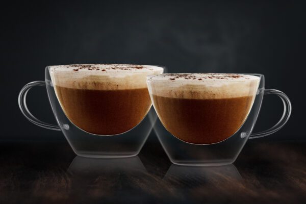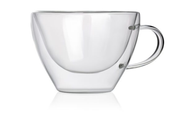 - Szklanki posiadają podwójną ściankę – by dłużej utrzymywać temperaturę zarówno ciepłą, jak i zimną.