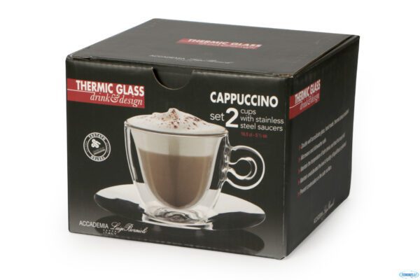 Filiżanki, szklanki termiczne do kawy z metalowym spodkiem 2×165 ml Cappucino LUIGI BORMIOLI