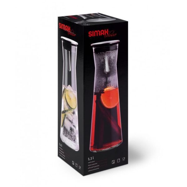 Szkło Simax, z którego wykonana jest karafka, jest odporne na czynniki chemiczne, gładkie, nieporowate i idealnie przezroczyste, co czyni produkt estetycznym i odpornym na korozję. Karafka o pojemności 1,1 litra jest idealna do serwowania wody z dodatkiem mięty i cytryny, zapewniając świeżość i orzeźwienie w każdym momencie.