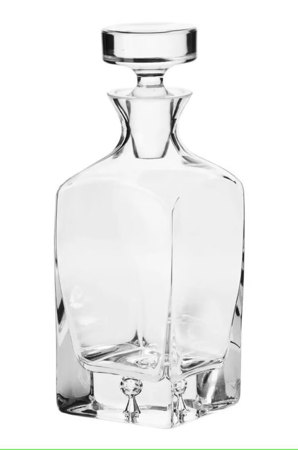 Efektowna, kwadratowa karafka do whisky z charakterystycznym pęcherzykiem powietrza zatopionym w grubym dnie i solidnym, szczelnym, szklanym korkiem zachwyci każdą osobę czułą na stylowy design.