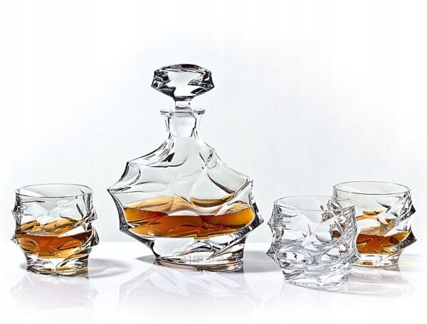 Kryształowa karafka do whisky wykonana z najwyższej jakości kryształu 24%PbO. Szkło charakteryzuje się nienaganną przejrzystością oraz wzorami, które dopasują się zarówno do tradycyjnego, jak i nowoczesnego wnętrza. Idealnie sprawdzi się w roli prezentu, na whisky lub inny alkohol.
