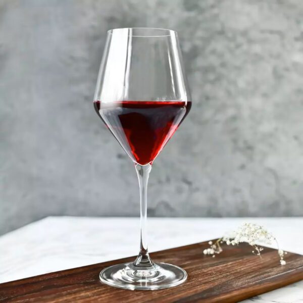 Eleganckie kieliszki do czerwonego wina z kolekcji Ray łączą interesujący design z funkcjonalnością. Ich duże, romboidalne czarki są połączone z długimi nóżkami, które izolują wino od ciepła dłoni. Szkło Crystalline o idealnej przejrzystości pięknie rozprasza światło, co umożliwia dokładne przyjrzenie się barwie trunku – aspektowi niezwykle ważnemu dla koneserów. Najwyższa jakość szkła zapewnia kieliszkom wyjątkową trwałość i odporność na zmatowienie oraz uszkodzenia. Są one również przystosowane do mycia w zmywarce.