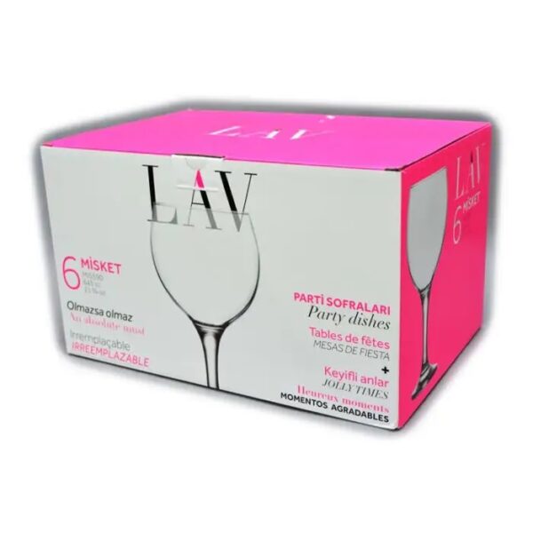 Zestaw sześciu kieliszków typu goblet marki LAV z serii Misket o pojemności 645 ml. Wykonane z trwałego, grubego szkła kieliszki charakteryzują się klasycznym designem, który pasuje do każdego wystroju stołu. Ich idealnie gładka powierzchnia ułatwia utrzymanie czystości. Kieliszki Misket Lav są idealne zarówno do użytku domowego, jak i w profesjonalnych lokalach gastronomicznych.