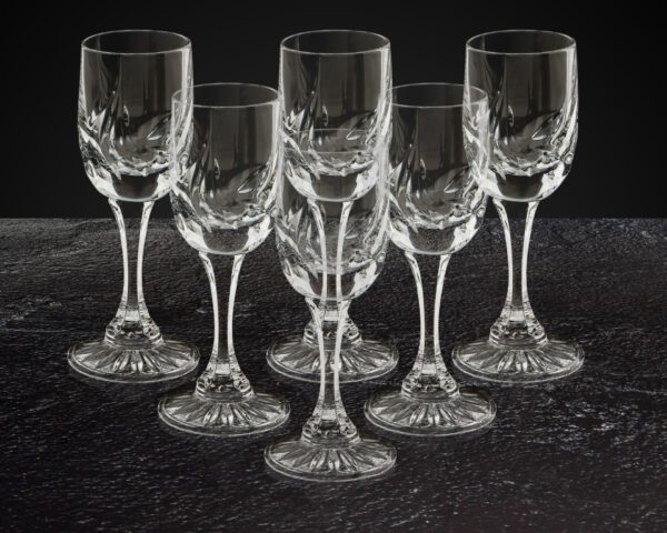Komplet 6 sztuk kieliszków do likieru, sherry i nalewek. Kieliszki są wykonane z wysokiej jakości szkła kryształowego.