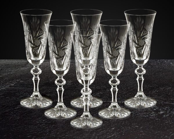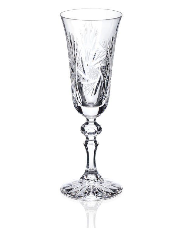 Komplet sześciu kieliszków do szampana z kolekcji „MŁYNEK” Tulipan, wykonanych z najwyższej jakości kryształu, charakteryzuje się eleganckim kształtem i ręcznym zdobieniem, co sprawia, że jest to wyjątkowo luksusowy wybór idealny na szampana. Stanowią także piękną dekorację stołu i doskonały pomysł na prezent.