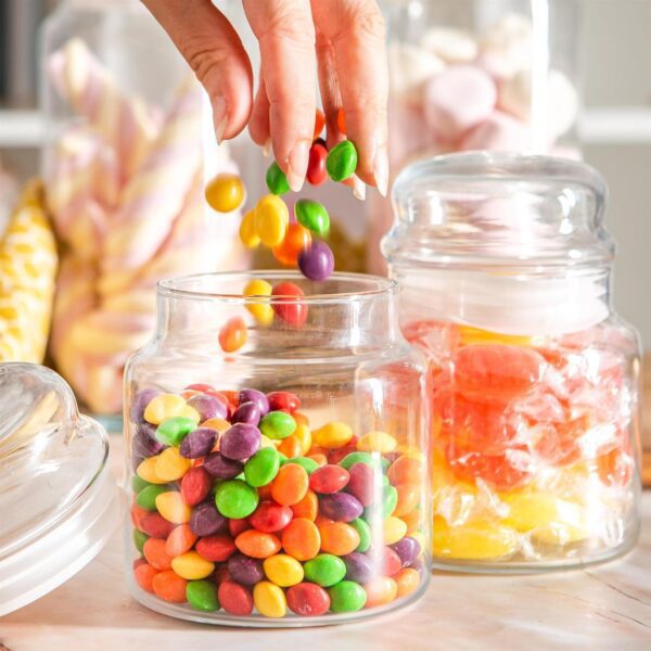 Zestaw pojemników wykonany z wysokiej jakości szkła, które jest przezroczyste, ułatwiając identyfikację zawartości. Umożliwia to łatwe wyszukiwanie potrzebnych produktów i kontrolowanie stanu zapasów żywności. Zestaw ten jest również świetnym rozwiązaniem do organizacji kuchni, nadając jej elegancki wygląd.