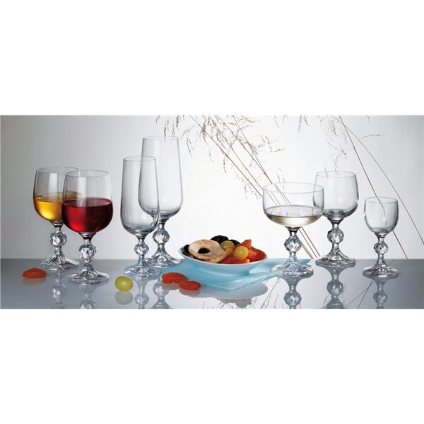 Kieliszki do szampana z linii STERNA (KLAUDIA) zostały stworzone z najwyższej klasy kryształowego szkła. Charakteryzują się idealną przejrzystością i elegancko wyglądają na każdym stole, emitując przyjemne dźwięki, na przykład podczas wznoszenia toastów. Te kryształowe kieliszki, o doskonałych kształtach i wykonane z niezwykłą precyzją oraz dbałością o szczegóły, zyskają uznanie nawet najbardziej wymagających koneserów. Są również doskonałym pomysłem na prezent.