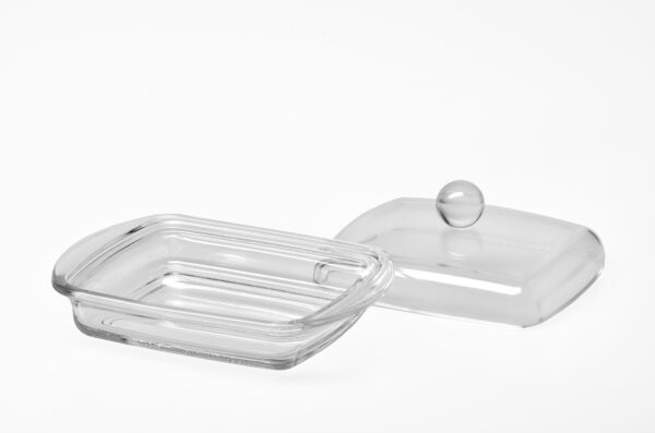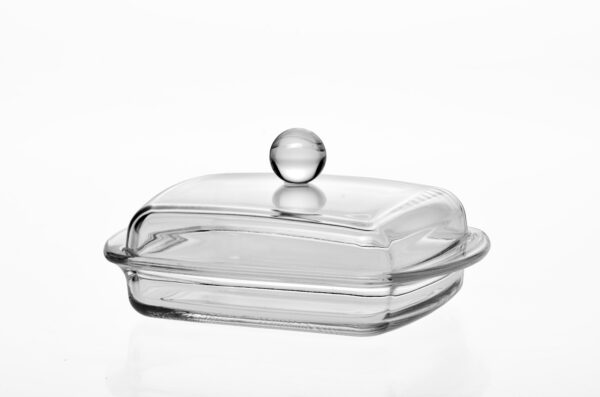Prostokątna maselniczka z kulką – szklana z pokrywą | Huta Szkła Jasło (Jasło Glass)