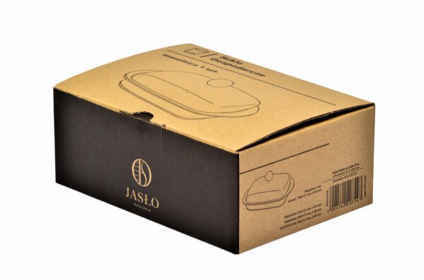 To elegancka i praktyczna maselniczka wykonana ze szkła, wyprodukowana przez renomowaną Hutę Szkła Jasło, znaną z wysokiej jakości wyrobów szklanych o tradycyjnym charakterze.