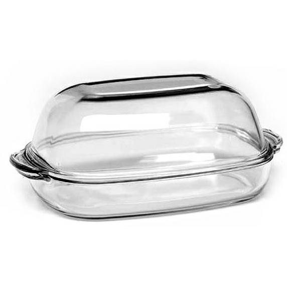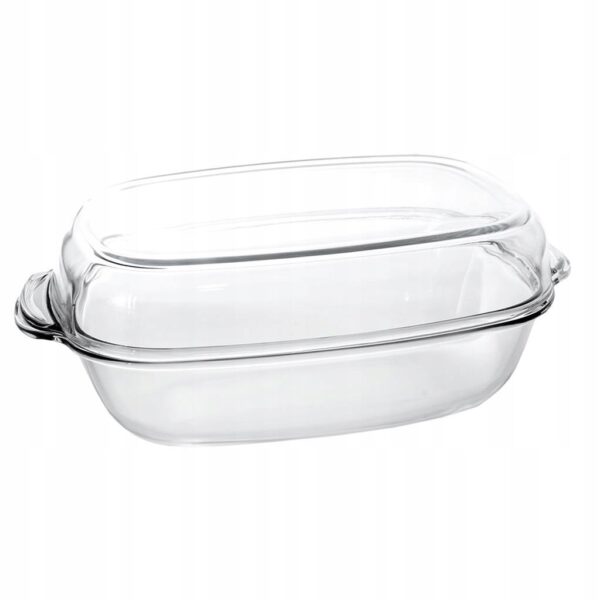 Prostokątne naczynie żaroodporne z pokrywą służy jako forma do pieczenia i zapiekania potraw w piekarnikach każdego typu.