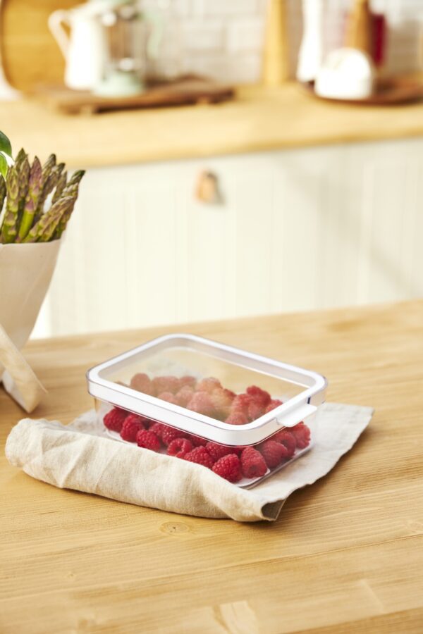 Produkty posiadają przezroczystą podstawę, wielofunkcyjną pokrywę oraz wyjmowaną wkładkę z otworami umożliwiającymi odpływ płynów, co zapewnia ochronę żywności i jej dłuższą świeżość. Przejrzystość pojemników pozwala na łatwy przegląd zawartości i oszczędność czasu. Obrotowa pokrywa umożliwia tworzenie większej przestrzeni lub idealne układanie w stosy. Pojemniki są wytrzymałe na temperatury do -20 ℃, co ułatwia ich użytkowanie. Po zastosowaniu można je łatwo wyczyścić w zmywarce.
