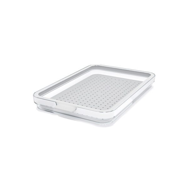 Produkty posiadają przezroczystą podstawę, wielofunkcyjną pokrywę oraz wyjmowaną wkładkę z otworami umożliwiającymi odpływ płynów, co zapewnia ochronę żywności i jej dłuższą świeżość. Przejrzystość pojemników pozwala na łatwy przegląd zawartości i oszczędność czasu. Obrotowa pokrywa umożliwia tworzenie większej przestrzeni lub idealne układanie w stosy. Pojemniki są wytrzymałe na temperatury do -20 ℃, co ułatwia ich użytkowanie. Po zastosowaniu można je łatwo wyczyścić w zmywarce.