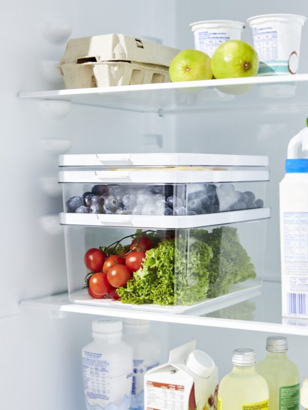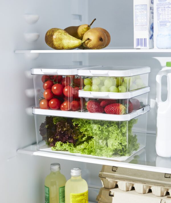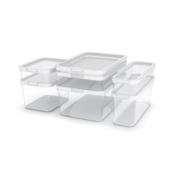 Produkty posiadają przezroczystą podstawę, wielofunkcyjną pokrywę oraz wyjmowaną wkładkę z otworami umożliwiającymi odpływ płynów, co zapewnia ochronę żywności i jej dłuższą świeżość. Przejrzystość pojemników pozwala na łatwy przegląd zawartości i oszczędność czasu. Obrotowa pokrywa umożliwia tworzenie większej przestrzeni lub idealne układanie w stosy. Pojemniki są wytrzymałe na temperatury do -20 ℃, co ułatwia ich użytkowanie. Po zastosowaniu można je łatwo wyczyścić w zmywarce.