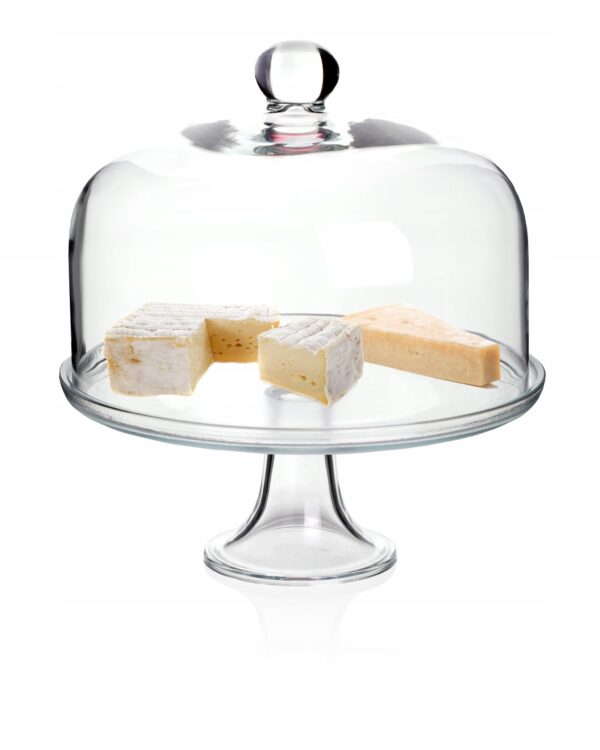 Patera w komplecie z kloszem stanowi najlepszą oprawę dla pysznych słodkości. Pięknie będzie prezentować się na stole podczas każdego przyjęcia. Stanowić może również niezwykłą ozdobę kuchni. Jest wygodna i funkcjonalna, idealna do przechowywania ciast.