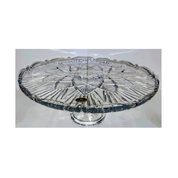 Kryształowa patera, tortownica, wykonana z kryształu najwyższej jakości zawierającego 24% PbO, charakteryzuje się idealną przejrzystością. Prezentuje się ona wyjątkowo na stole i doskonale nadaje się do serwowania tortów, ciast lub owoców.