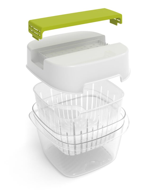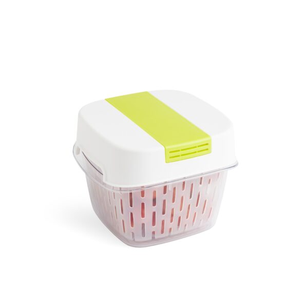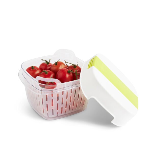 ✅ Praktyczny pojemnik na żywność zachowujący jej świeżość na dłużej dzięki strukturze plastra miodu i wentylacji dla optymalnej wilgotności, oraz podniesionemu koszykowi zapewniającemu lepszą cyrkulację powietrza.