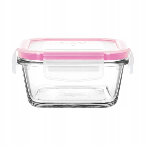 Pojemnik został wyprodukowany z wysokiej jakości materiałów przez renomowaną na całym świecie turecką firmę LAV. Jego pokrywa jest wyposażona w specjalne klipsy, które zachowują świeżość przechowywanych produktów. Jest on przystosowany do kontaktu z żywnością i idealnie nadaje się na śniadaniówkę do pracy czy szkoły. Grube i wytrzymałe szkło gwarantuje odporność na stłuczenia i zarysowania.