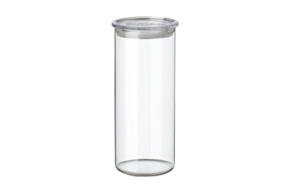 Słoik z żaroodpornego szkła, wyposażony w plastikową pokrywkę i uszczelkę, zapewnia zachowanie świeżości przechowywanych produktów na dłużej.