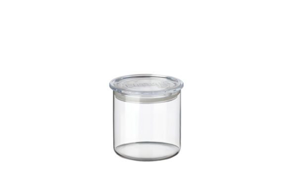 Słoik z żaroodpornego szkła wyposażony w plastikową pokrywkę i uszczelką zapewnia dłuższą świeżość przechowywanej żywności.