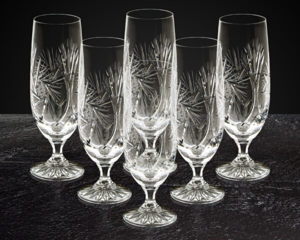 Zestaw sześciu kielichów do piwa lub cydru, wykonanych z wysokogatunkowego szkła kryształowego, zdobionych tradycyjnym wzorem 'MŁYNEK’.