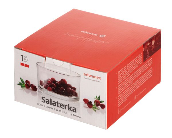 Funkcjonalna salaterka z prostymi ściankami. Jej klasyczny kształt świetnie komponuje się zarówno z minimalistyczną, jak i bardziej wyrafinowaną zastawą. Szklana salaterka to przydatny dodatek do każdego posiłku. Należycie wyeksponuje na stole sałatkę lub owoce.