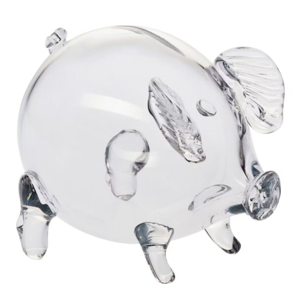 Ta urocza i praktyczna szklana skarbonka to idealny sposób na zachęcenie do oszczędzania zarówno dzieci, jak i dorosłych. Wykonana ze szkła o wysokiej jakości, nasza świnka skarbonka prezentuje nie tylko funkcjonalność, ale także wyjątkowy design, który sprawia, że staje się ona ozdobą każdego wnętrza. Świnka skarbonka została uformowana w całości ręcznie z gładkiego, bezbarwnego szkła.
