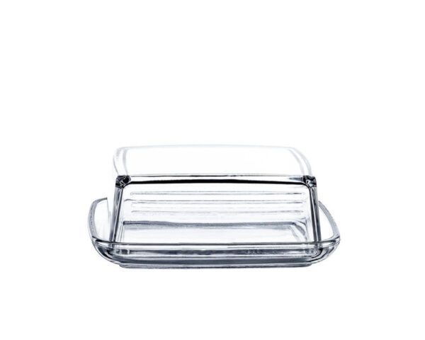 Szklana maselnica LUNA to naczynie o klasycznym kroju z pokrywą zabezpieczającą masło.