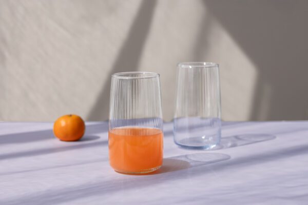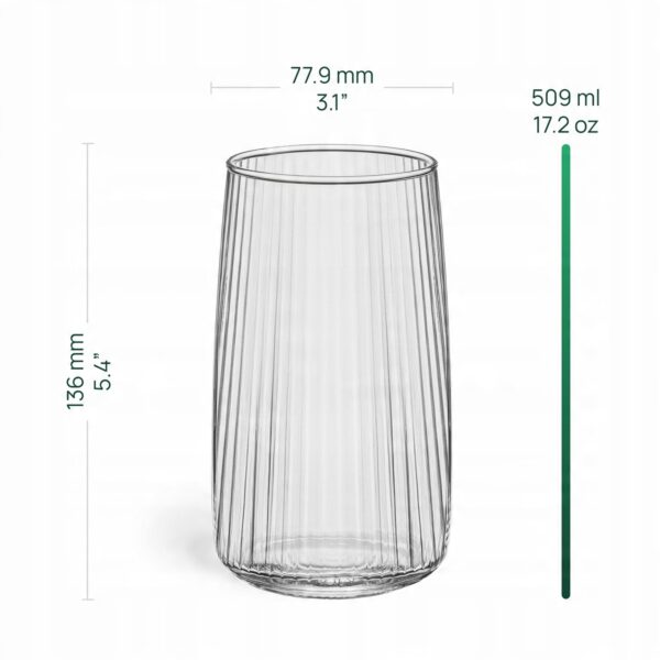 Szklanka Gruszka Optic 480 ml to propozycja dla tych, którzy szukają połączenia nowoczesnej estetyki z funkcjonalnością. Charakterystyczny, rozszerzający się ku górze kształt typu „gruszka” świetnie leży w dłoni, a dekoracyjne żłobienia (tzw. optyk) efektownie załamują światło, eksponując barwę napoju.