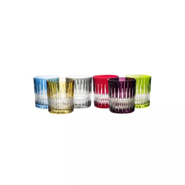 Komplet 6 sztuk szklanek do whisky, wody lub soku. Wykonane z wysokiej jakości szkła kryształowego malowanego na różne kolory.