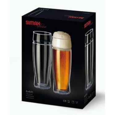 Produkty szklane typu double-wall, z podwójnymi ścianami, są termiczne i zaprojektowane tak, aby dłużej utrzymywać temperaturę napoju. Wykonane są z wysokiej jakości szkła żaroodpornego, odporne na temperatury w zakresie od -40°C do 300°C, i są bezpieczne w kontakcie z żywnością. Szkło SIMAX charakteryzuje się dużą odpornością na czynniki chemiczne, jest gładkie, nieporowate, idealnie przezroczyste i odporne na korozję. Szklanki do piwa typu double wall są dostępne w zestawie 2 sztuk.