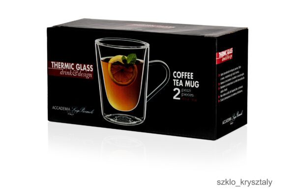 Szklanki termiczne z podwójną ścianką wykonane z lekkiego szkła boro-krzemowego. Zaletą tego szkła jest odporność na wysokie i niskie temperatury od -20 do +150 stopni Celsjusza.