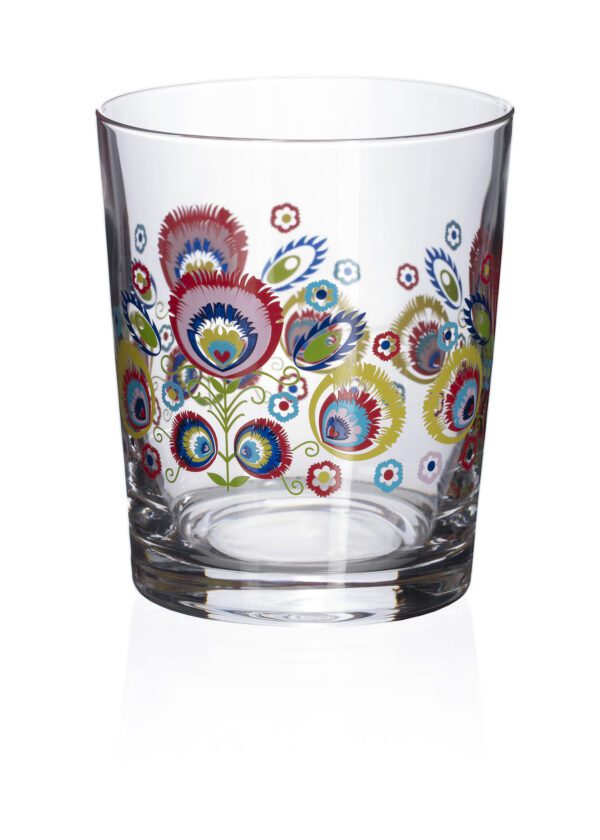 Szklanki FOLK ze zdobieniem inspirowanym tradycyjnymi wycinankami łowickimi to niebanalny dodatek do każdej kuchni i jadalni, który z pewnością doda świeżości i koloru codziennym posiłkom.