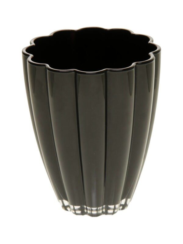 Wazon ma elegancki i stylowy wygląd, wykonany w głębokim czarnym kolorze. Jego kształt jest cylindryczny, ale z pionowymi, delikatnymi wypukłymi żłobieniami, które dodają mu nowoczesnego i pierwotnego charakteru. Jego minimalistyczny design sprawia, że jest on nie tylko funkcjonalny, ale również stanowi wyrazisty akcent w każdym pomieszczeniu. Czerń wazonu symbolizuje nowoczesność i wyrafinowanie, która przyciąga wzrok. Jego kształt jest starannie przemyślany, co sprawia, że doskonale nadaje się do eksponowania zarówno pojedynczych kwiatów, jak i większych bukietów. Dzięki swojej uniwersalnej kolorystyce, wazon ten może być używany w różnych stylach – od klasycznego po nowoczesny, co czyni go wszechstronnym dodatkiem do każdego wnętrza.