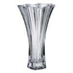 Kryształowy wazon został wykonany z najwyższej jakości szkła kryształowego. Szkło jest idealnie przejrzyste, a wazon pięknie prezentuje się na stole. Kryształowy wazon idealnie nadaje się na kwiaty cięte, jako efektowna dekoracja lub element kwiatowej aranżacji; sprawdzi się także jako prezent.