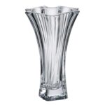 Ten kryształowy wazon, wykonany z najwyższej jakości szkła kryształowego, charakteryzuje się idealną przejrzystością i pięknie prezentuje się na każdym stole. Jest doskonały do eksponowania ciętych kwiatów, jako wyrazista dekoracja lub jako element kompozycji kwiatowej; będzie również świetnym pomysłem na prezent.