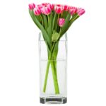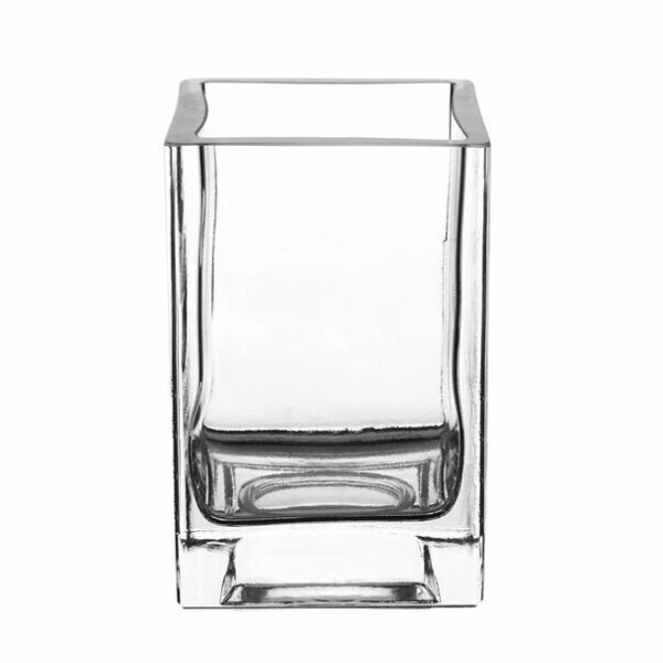 - Nowoczesny, szklany wazon kwadratowy o wysokości 15 cm dobrze się prezentują z kwiatami lub ze świecami.