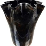 Szklany wazon dekoracyjny, który rozszerza się ku górze, wyróżnia się ozdobną falbanką na brzegu. Jego wielobarwne zabarwienie dodaje uroku. Produkt ten, będący wyrazem wysokiej jakości, doskonale prezentuje się zarówno z kwiatami ciętymi, jak i sztucznymi. Jest idealnym elementem dekoracyjnym dla różnorodnych wnętrz i powinien znaleźć się w każdym domu.