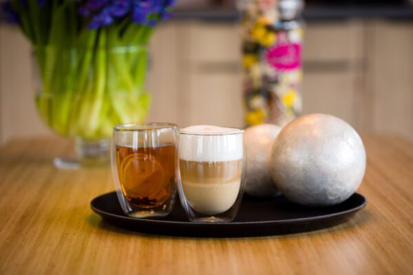 Szklanki z podwójnymi ściankami, ręcznie wykonane ze szkła dmuchanego borokrzemowego najwyższej jakości, które cechuje się wyjątkową trwałością i przejrzystością.