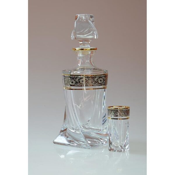 Zestaw do likieru i wódki ze szkła kryształowego 6+1 QUADRO ZŁOTO-PLATYNA Bohemia