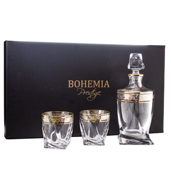 Kryształowy zestaw do whisky z linii QUADRO ZŁOTO-PLATYNA