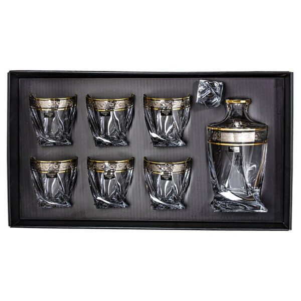 Zestaw do whisky z kryształowego szkła QUADRO ZŁOTO-PLATYNA 6+1