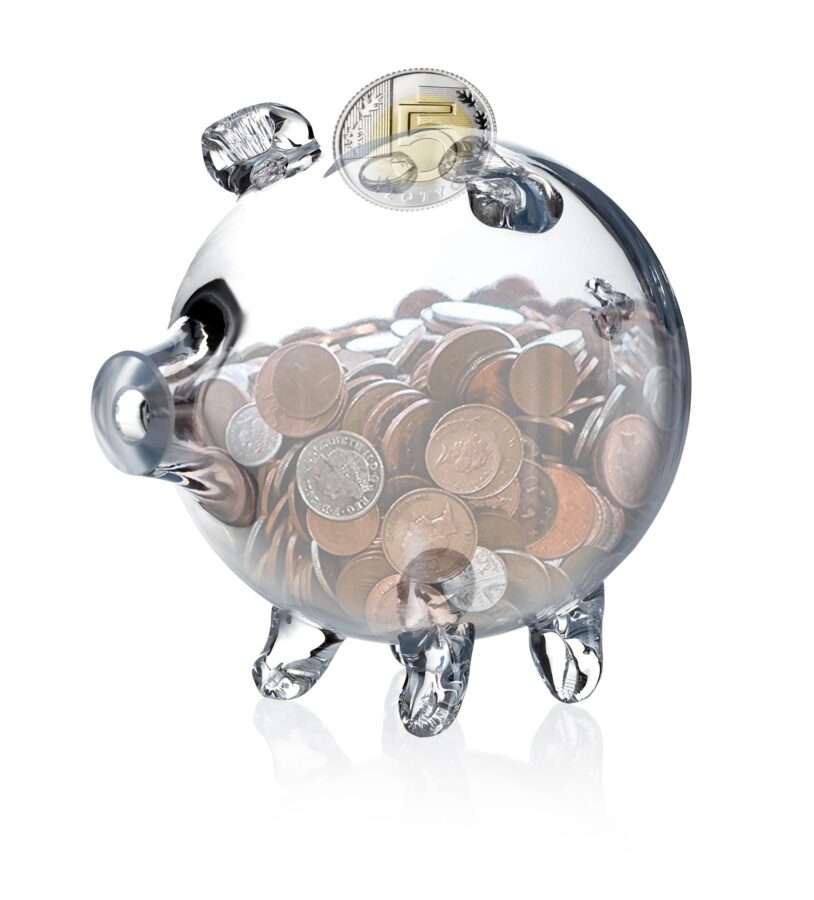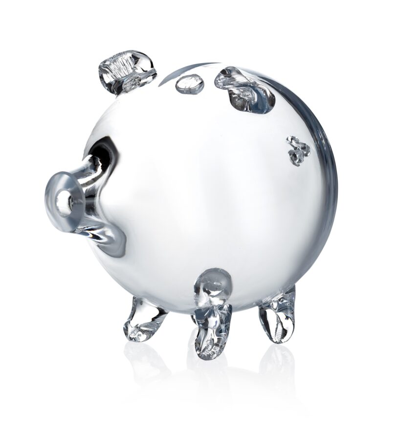 SKARBONKA ŚWINKA SZKLANA NA MONETY BEZBARWNA