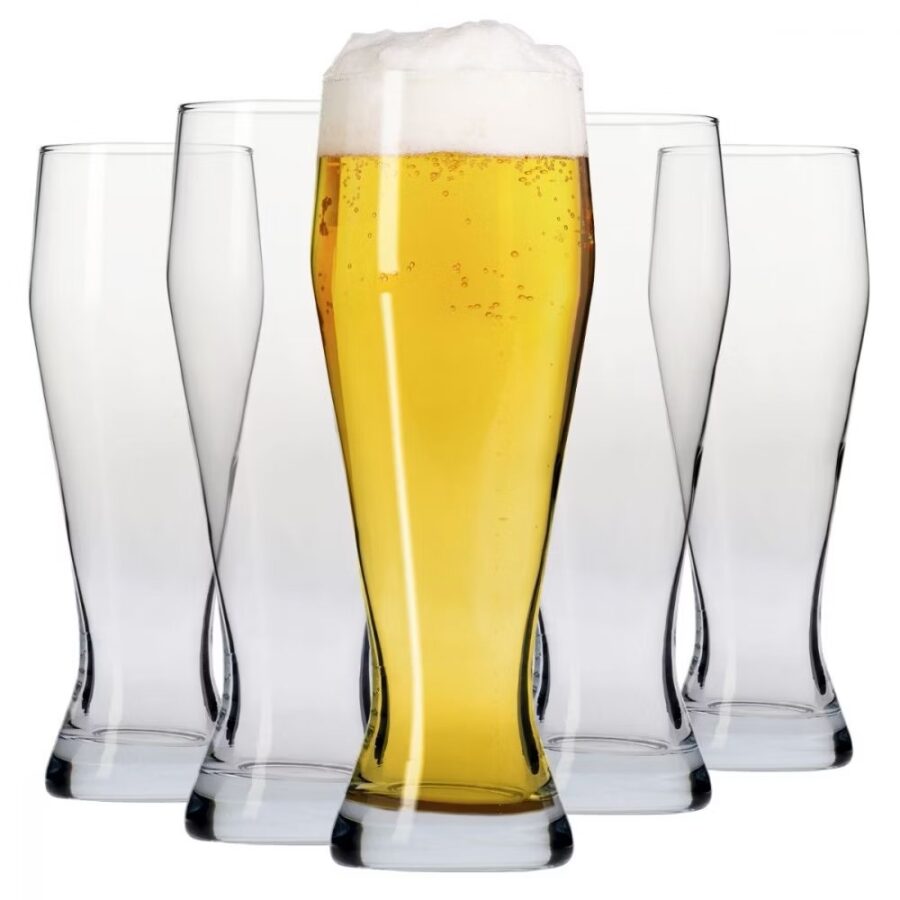 - Szklanki typu Weizen – to charakterystyczne, szerokie szklanki, które doskonale nadają się do piw pszenicznych. Ich kształt pozwala na uwolnienie owocowych i zbożowych aromatów, a także wspiera formowanie się wysokiej piany, typowej dla piw pszenicznych.